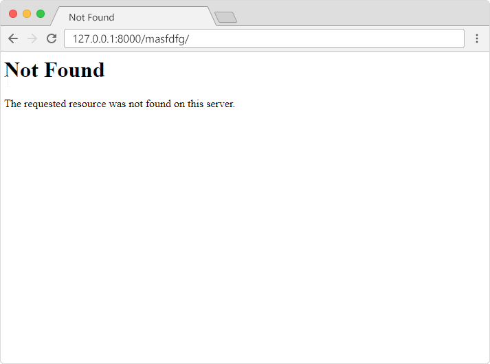 In the browser window, type 127.0.0.1:8000/masfdfg/ in the address bar.