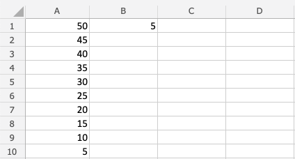Let's keep the numbers from the last exercise. If you did last exercise, remove the value in B1.