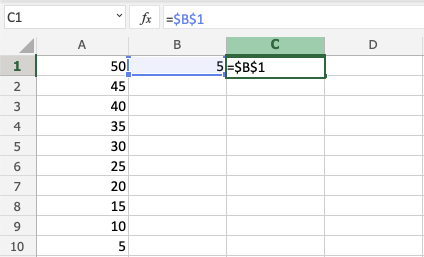 3. Type dollar sign before column and row $B$1