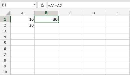 Great! 30 is the result by adding A1 and A2.