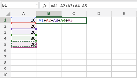 You can add more cells to the formula by typing (+) between the cells.