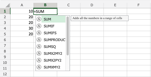 1. Select a cell and type (=)