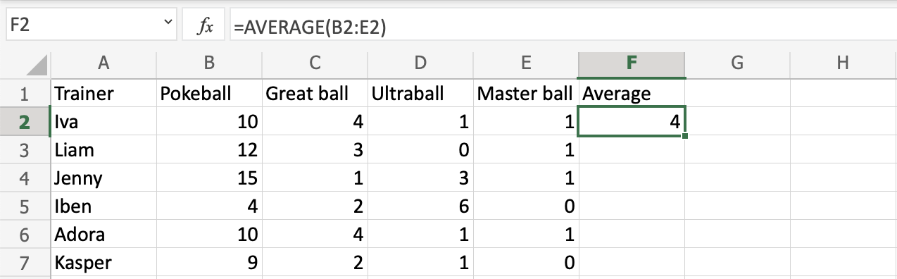 Let's have a look at an example where we help the Pokemon trainers to calculate the average of Pokeballs per trainer.