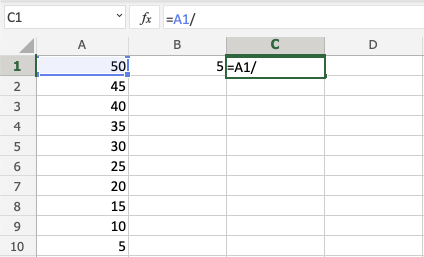 Excel Division Operator