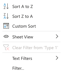 ) and choose the Filter option. This is the Column which holds the Type 1 data.