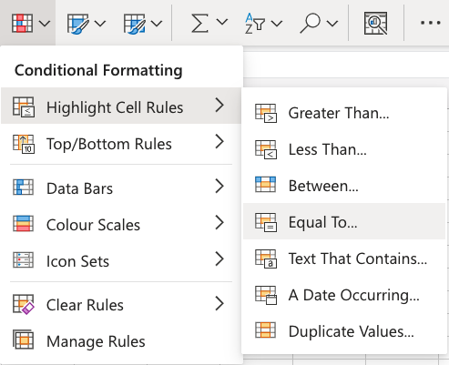 3. Select Equal To... from the menu