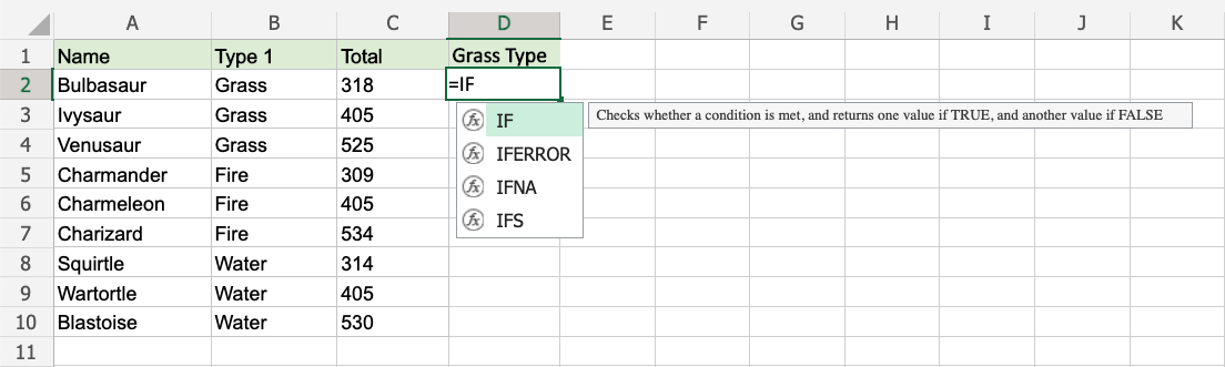 2. Type =IF