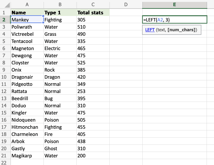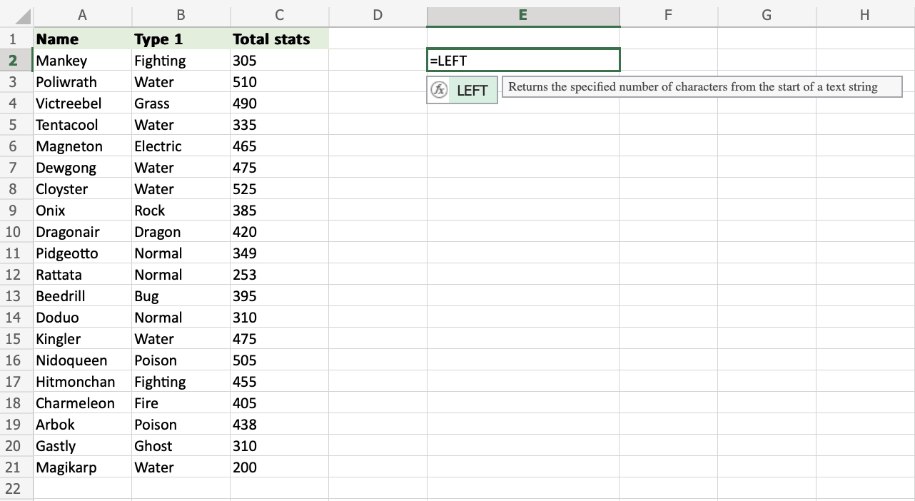 2. Type =LEFT