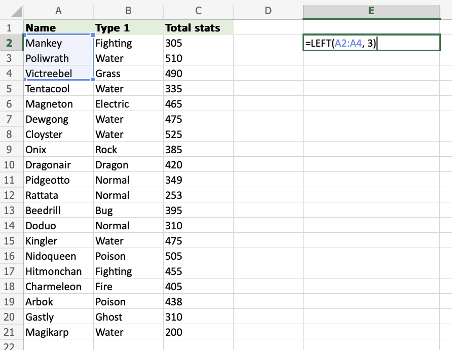 How to use the LEFT Function on a Range of Cells