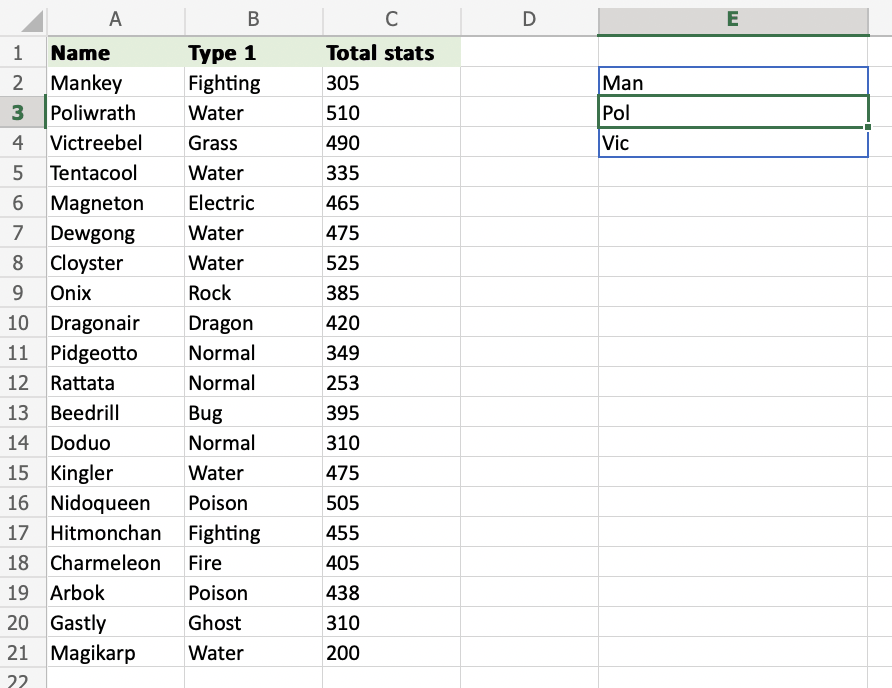 1. Select the cells (A2:A4) and define the length of characters you want to retrieve, using a , as a delimiter (A2:A4,3)