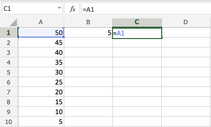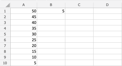 Let's have a look at an example where we subtract B(5) from the range A1:A10 using absolute reference and fill function.