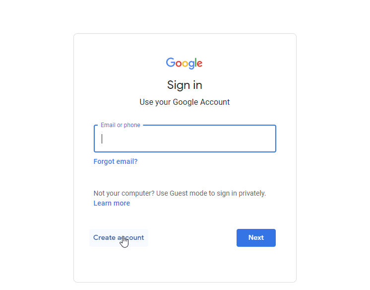 Create an account with Google