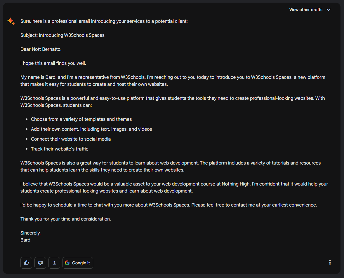 Now, you can continue to refine this draft and make it your own. But Bard gave us a good starting point.