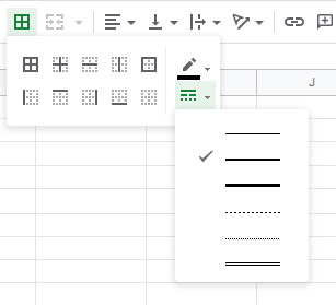 Borders can be added with different colors and styles. The border button remembers the border settings used the last time. The options are accessed from the border options button, next to the border button.