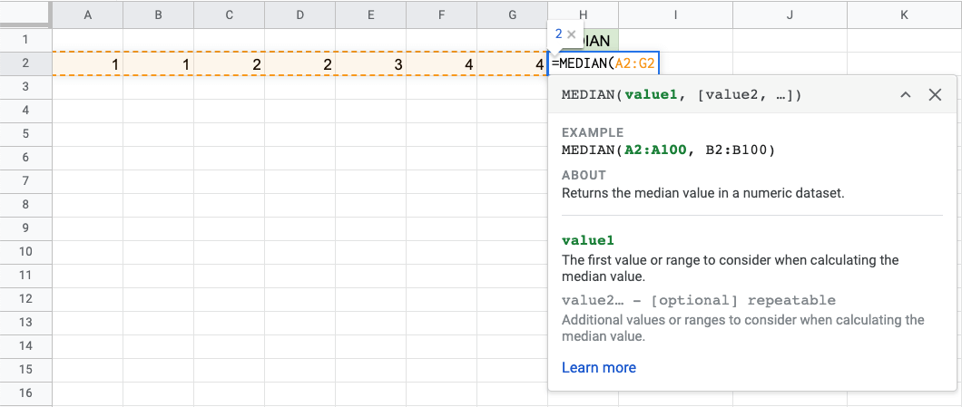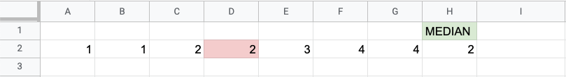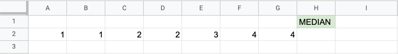 The MEDIAN function is a premade function in Google Sheets, which returns the middle value in the data.