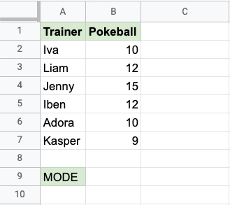 The MODE function is a premade function in Google Sheets, which is used to find the most common value(s).
