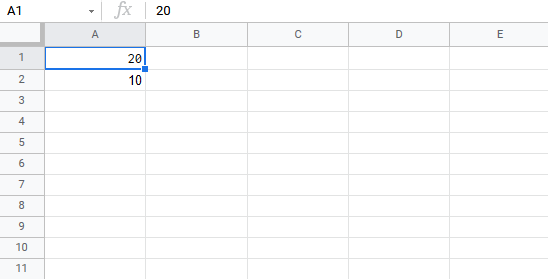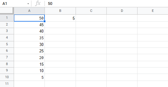 Let's have a look at an example where we subtract B1(5) from the range A1:A10 using absolute reference and the fill function.