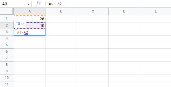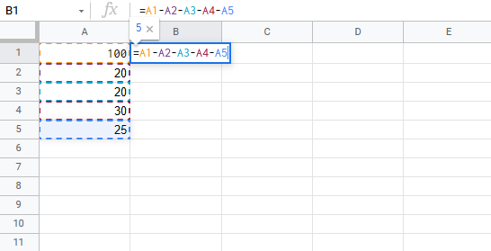 Tip: You can add more values into the formula by typing (-) between the cells.