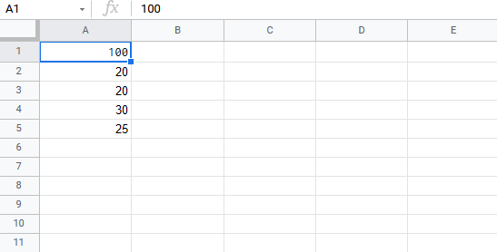 Let's add some numbers to work with. Type the following values: