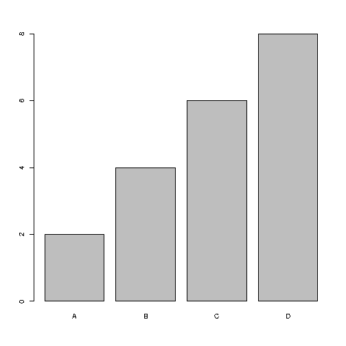 barplot()function to create a bar chart of the values names.argdefines the names of each observation in the x-axis